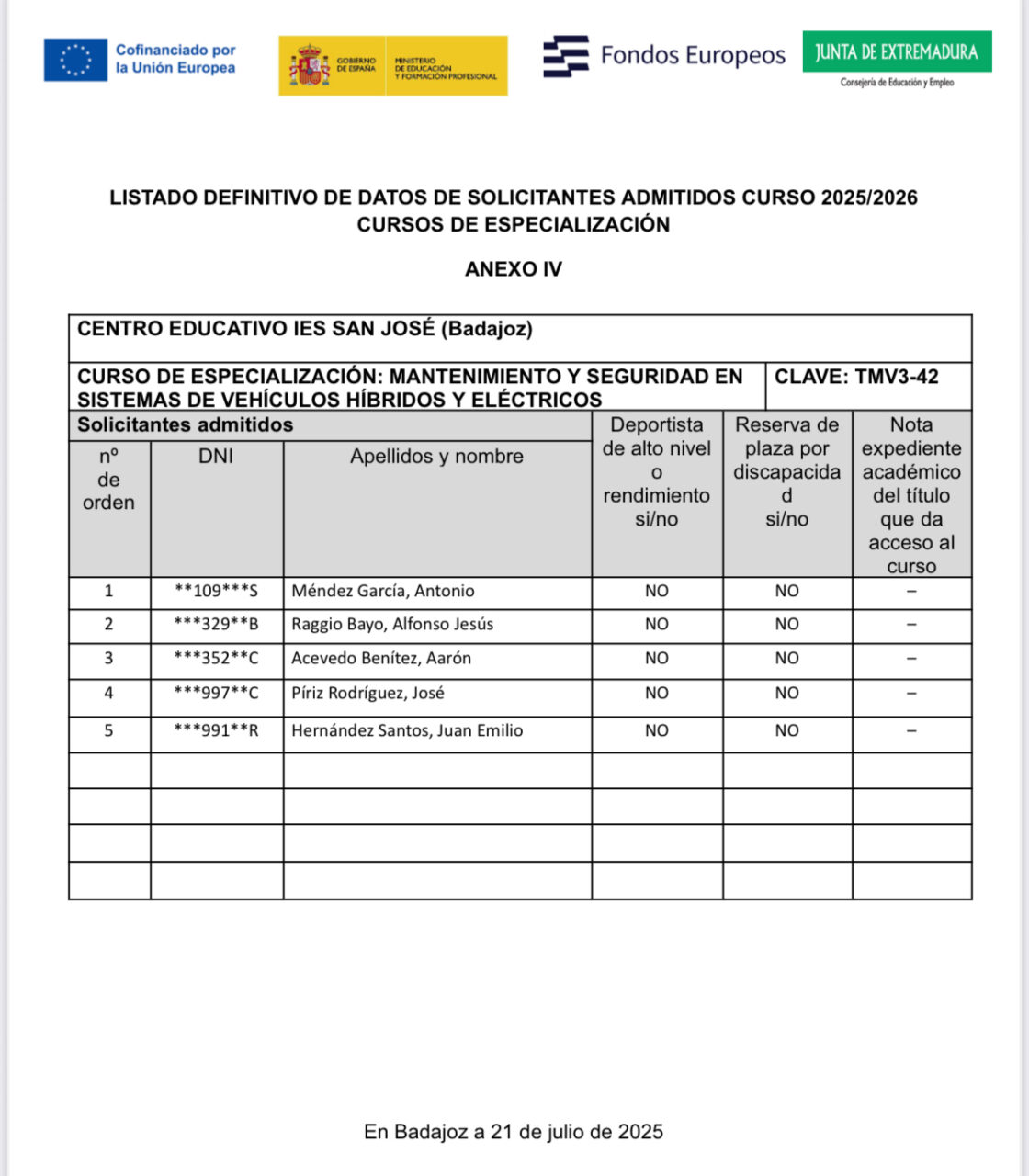 Ya se encuentran disponibles los listados de admisión y traslado de matrícula a segundo curso de los Ciclos Formativos de Grado Medio y Grado Superior en modalidad presencial completa para el curso 2025/2026.